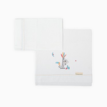Conjunto de lençóis da coleção Tucan com um desenho terno e infantil estampado com a magia de uns amiguinhos amorosos, para combinar com a coleção, confecionado em algodão, proporcionando a máxima suavidade.